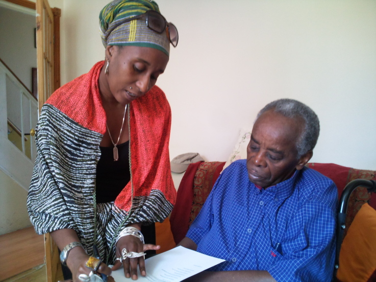 Malika and Sylvester writing poetry in his living room